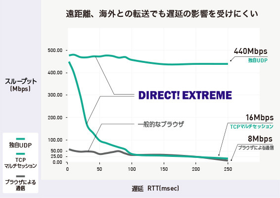 少し技術的な話になりますが、ファイルを遠隔地に運ぼうとした場合、ネットワーク帯域が十分確保されていたとしても、通常のブラウザやFTPから送る場合非常に時間がかかってしまうという現実があります。(https://www.directextreme.com/service/detail.html)