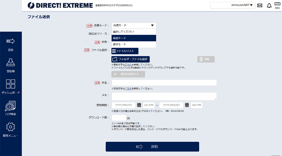 高速ファイル転送サービスDIRECT!EXTREMEをテスト